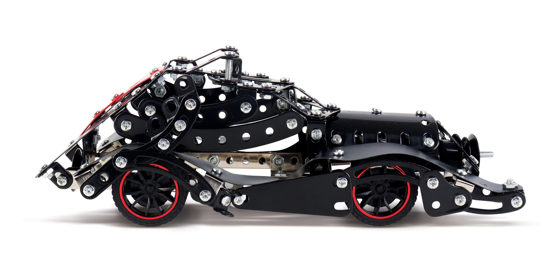 Unleash your inner hero with the Cape Crusaders Car Metal Construction Set. This dynamic set lets you build a sleek, crime-fighting vehicle inspired by the world of superheroes. In the superhero underworld, the vehicle combines cutting-edge performance technology with prototype military-grade equipment used by its hero to fight against crime.