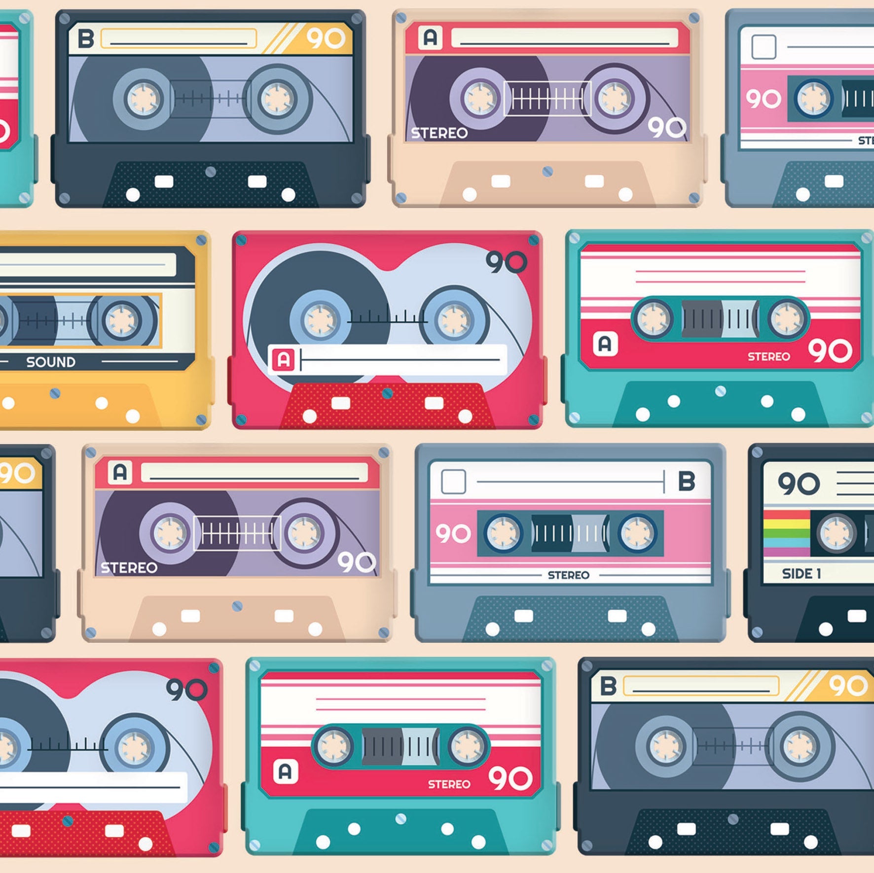 The front and rear cover designs showing a series of carefully illustrated images of Cassette Tapes through the ages. The perfect card for Retro and Music Enthusiasts around the world!