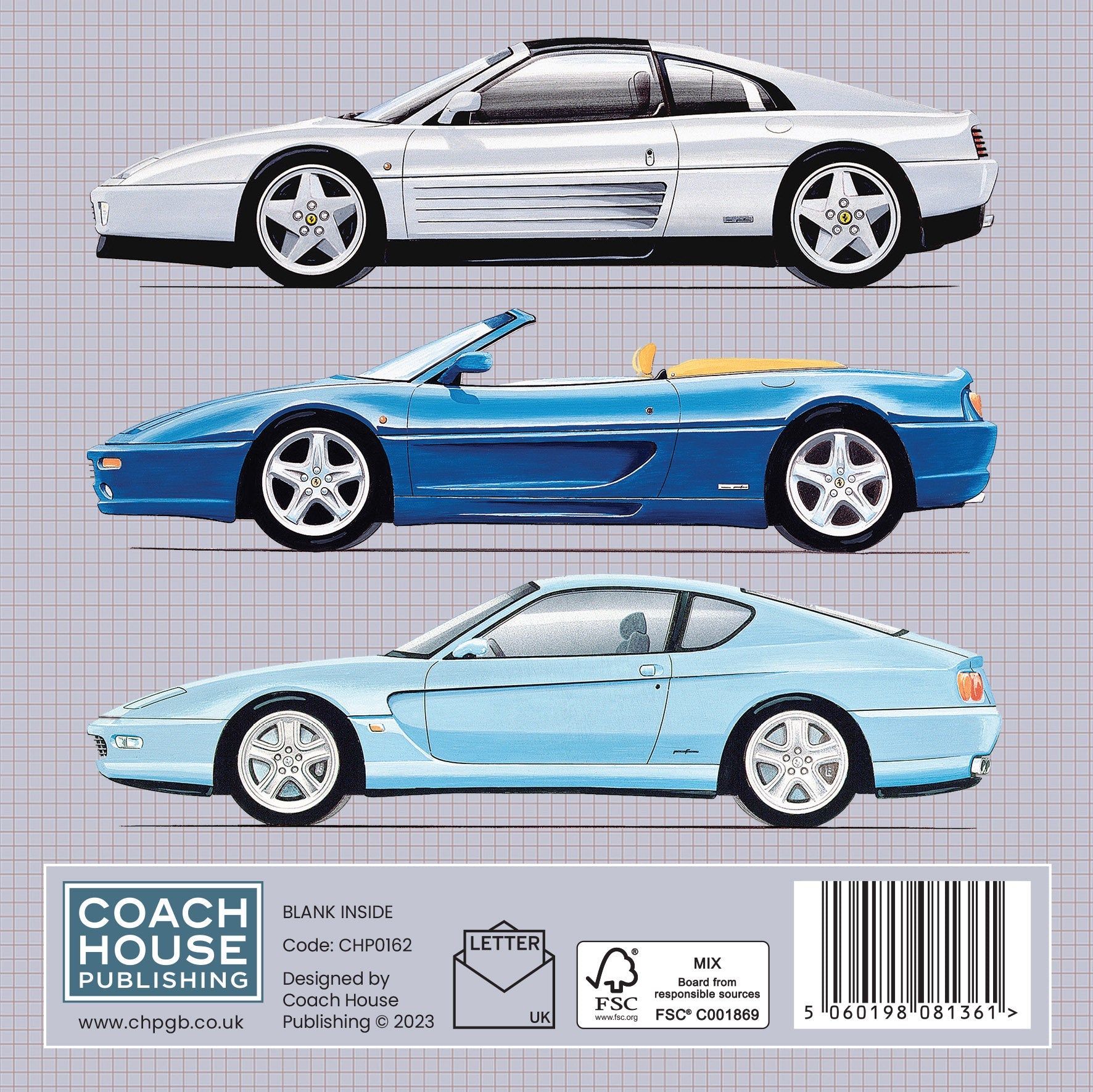 The front and rear cover designs showing a series of carefully illustrated images of Ferrari's through the ages from the old classics right through to the modern-day supercars. The perfect card for Ferrari & Car Enthusiasts around the world!