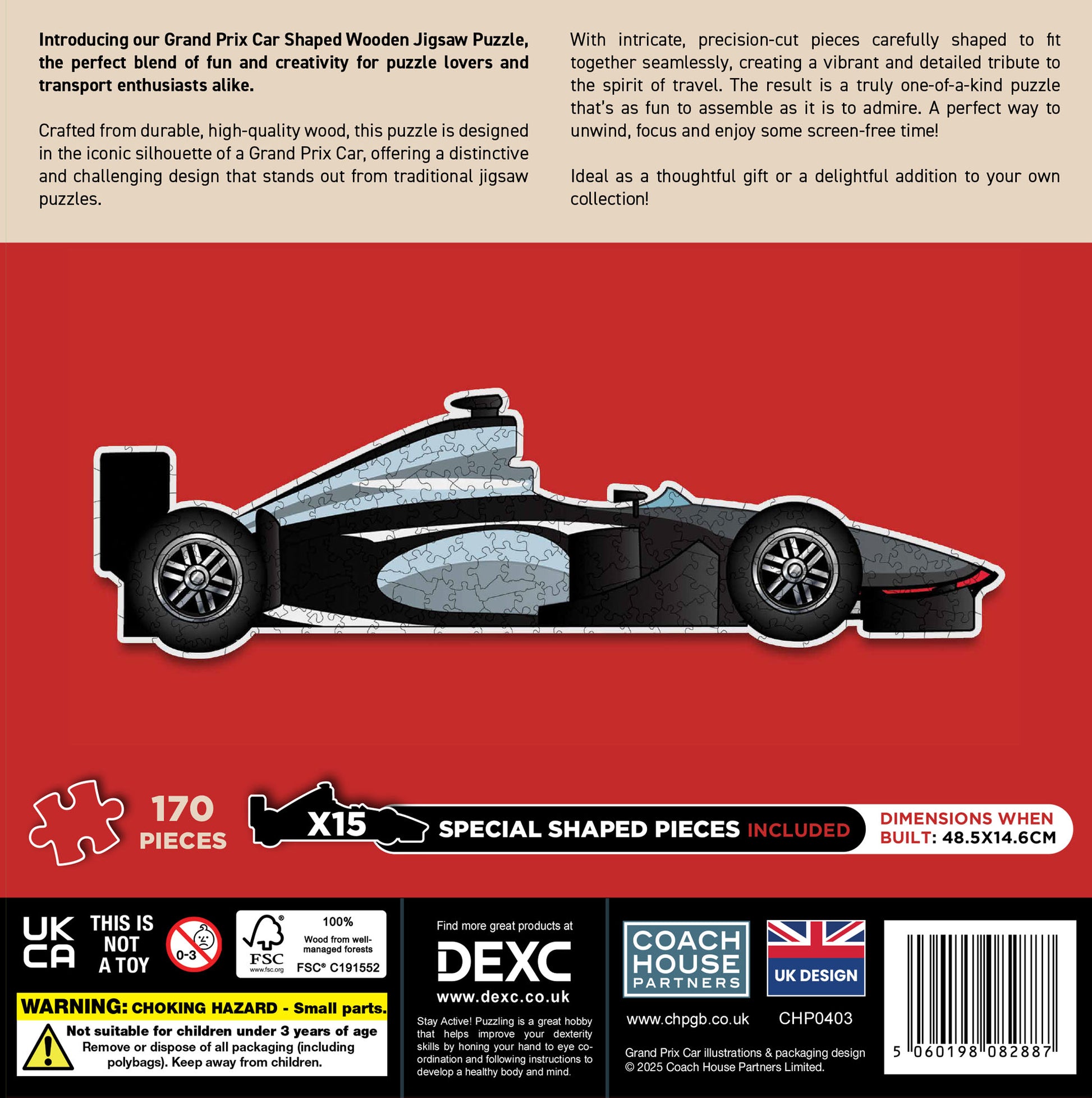 Crafted from durable, high-quality FSC certified wood, this puzzle is designed in the iconic silhouette of a race car, offering a distinctive and challenging design that stands out from traditional jigsaw puzzles.