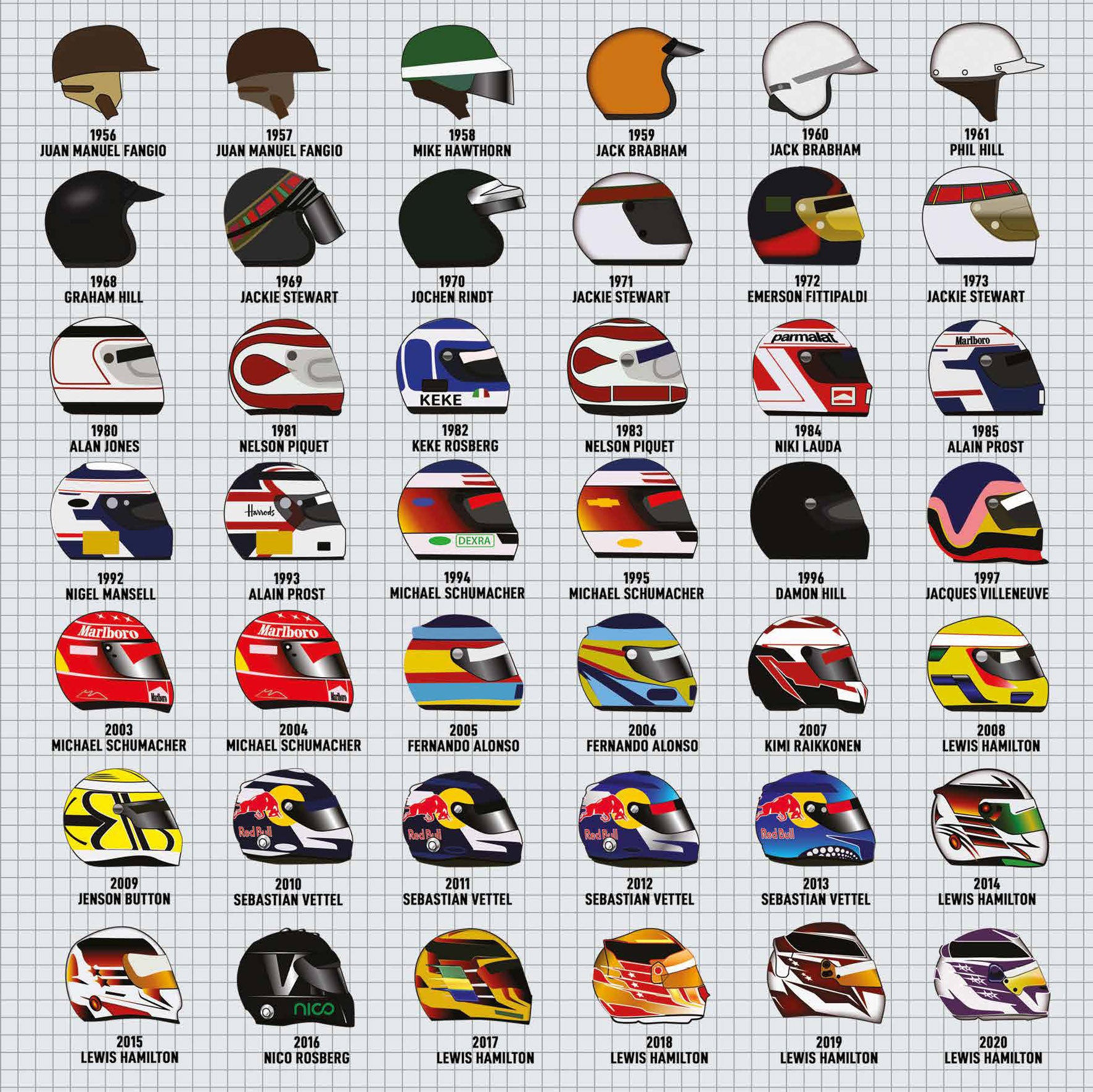 Over the past 70 years the world of motor sport has changed drastically - one of the most noticeable evolutions can be seen in the helmets worn by Grand Prix drivers, from the basic helmet and goggles worn by the legendary Fangio, the more safety conscious helmets worn by Senna and Schumacher to the works of art that adorn the head of Lewis Hamilton.