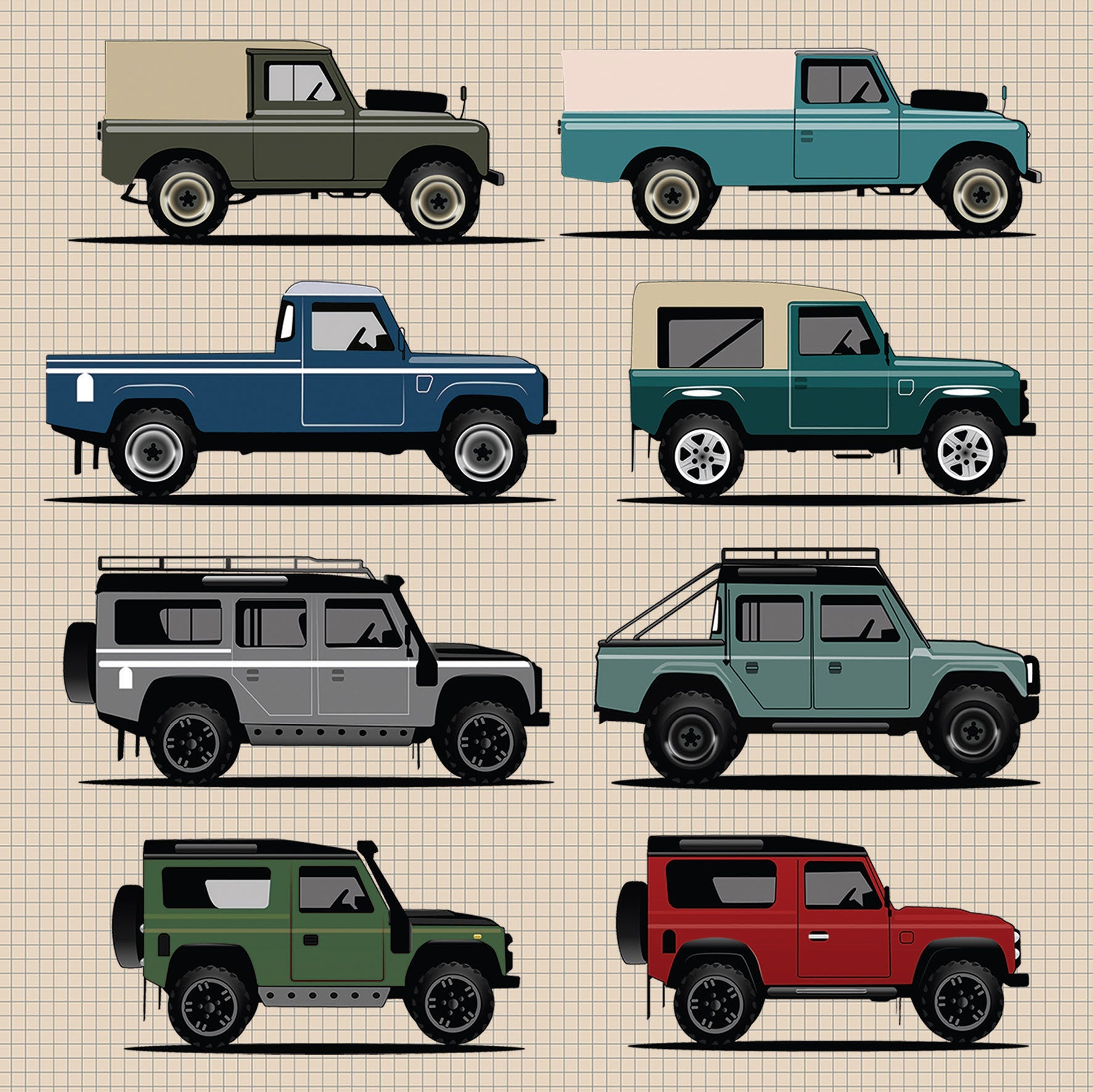 The front and rear cover designs showing a series of carefully illustrated images of Land Rover's through the ages from the Series 1 to the modern-day classics! The perfect card for Land Rover enthusiasts around the world!