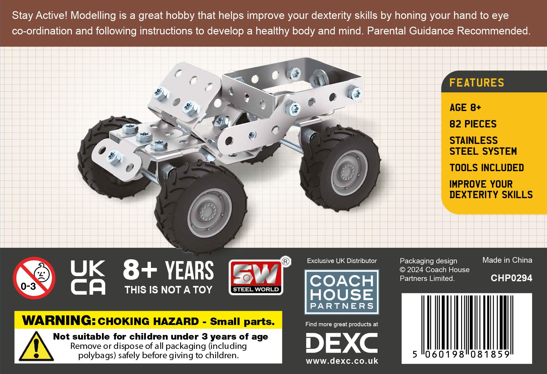Featuring clear easy to follow instructions, high-quality stainless-steel pieces and specialist tools to complete a sturdy and stylish model dune buggy ensuring a fun and educational building experience.