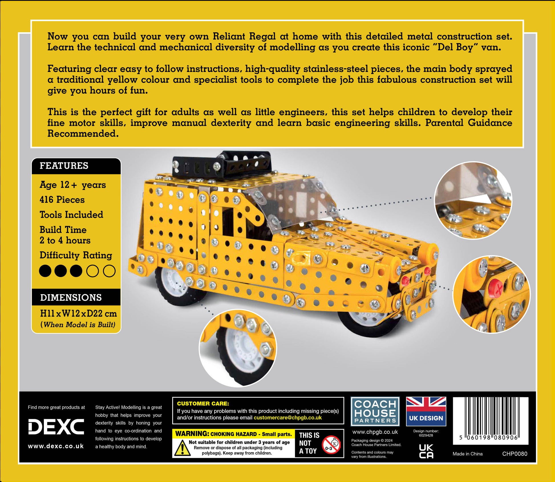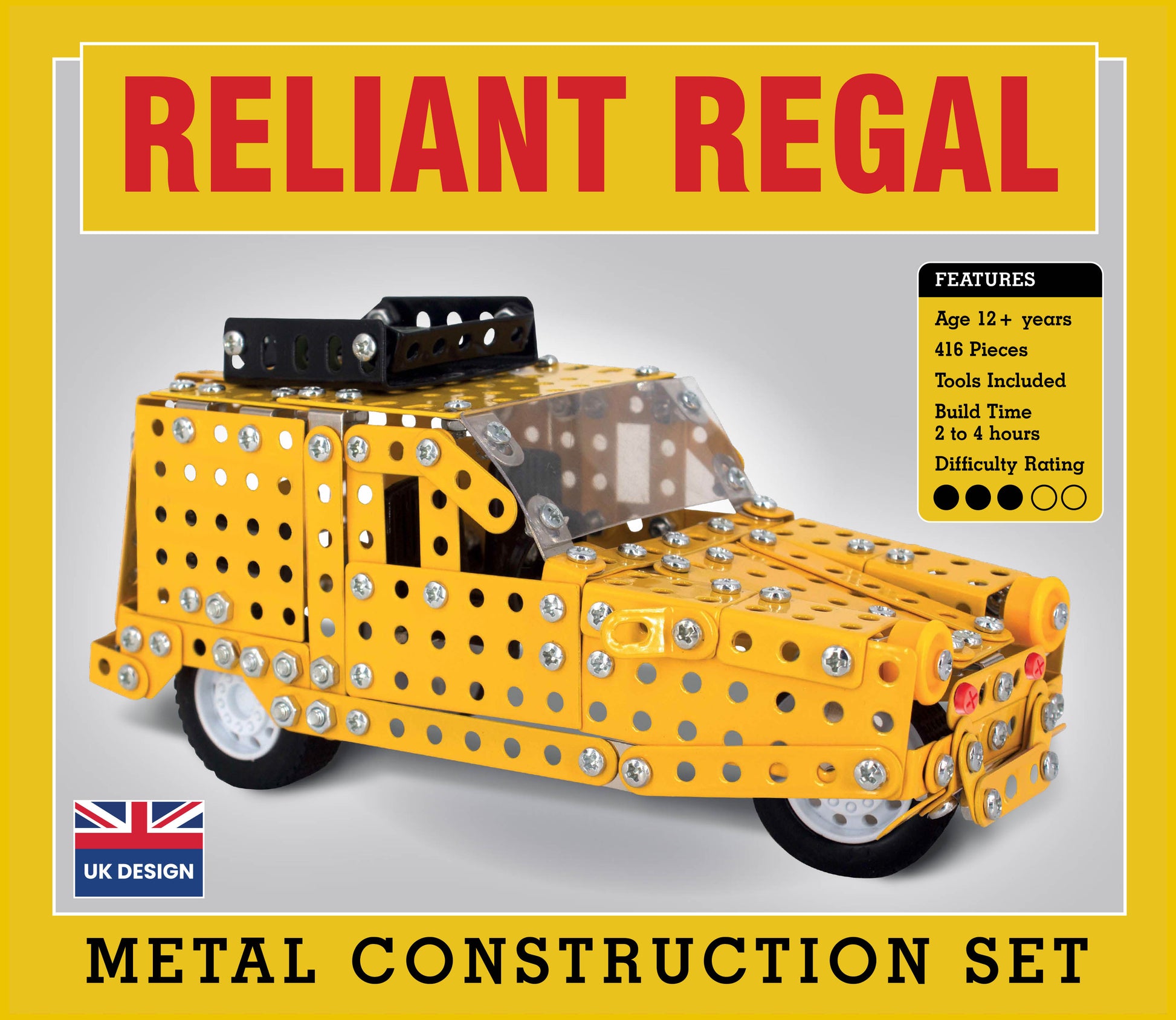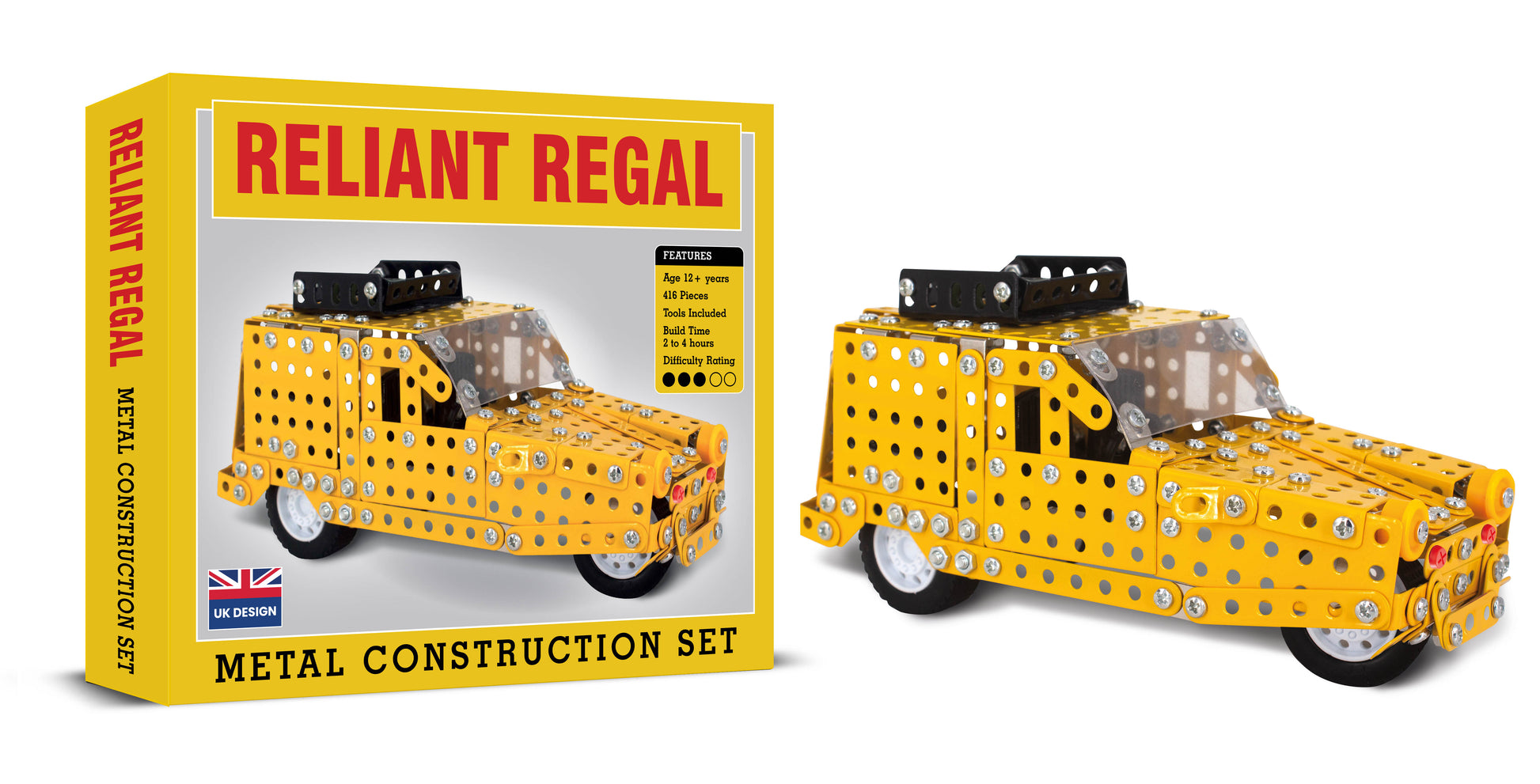Now you can build your very own yellow Reliant Regal at home with this detailed metal construction set. Learn the technical and mechanical diversity of modelling as you create this iconic “Del Boy” van.