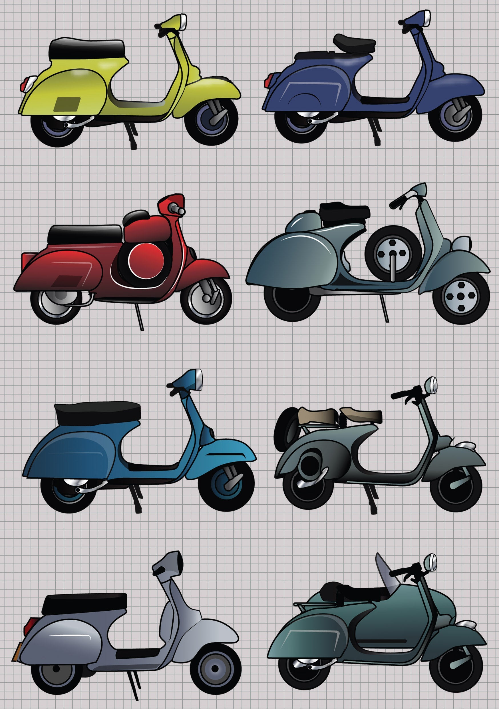 The front and rear cover displays a series of carefully illustrated images of scooters through the ages. The perfect notebook for Scooter Enthusiasts around the world!