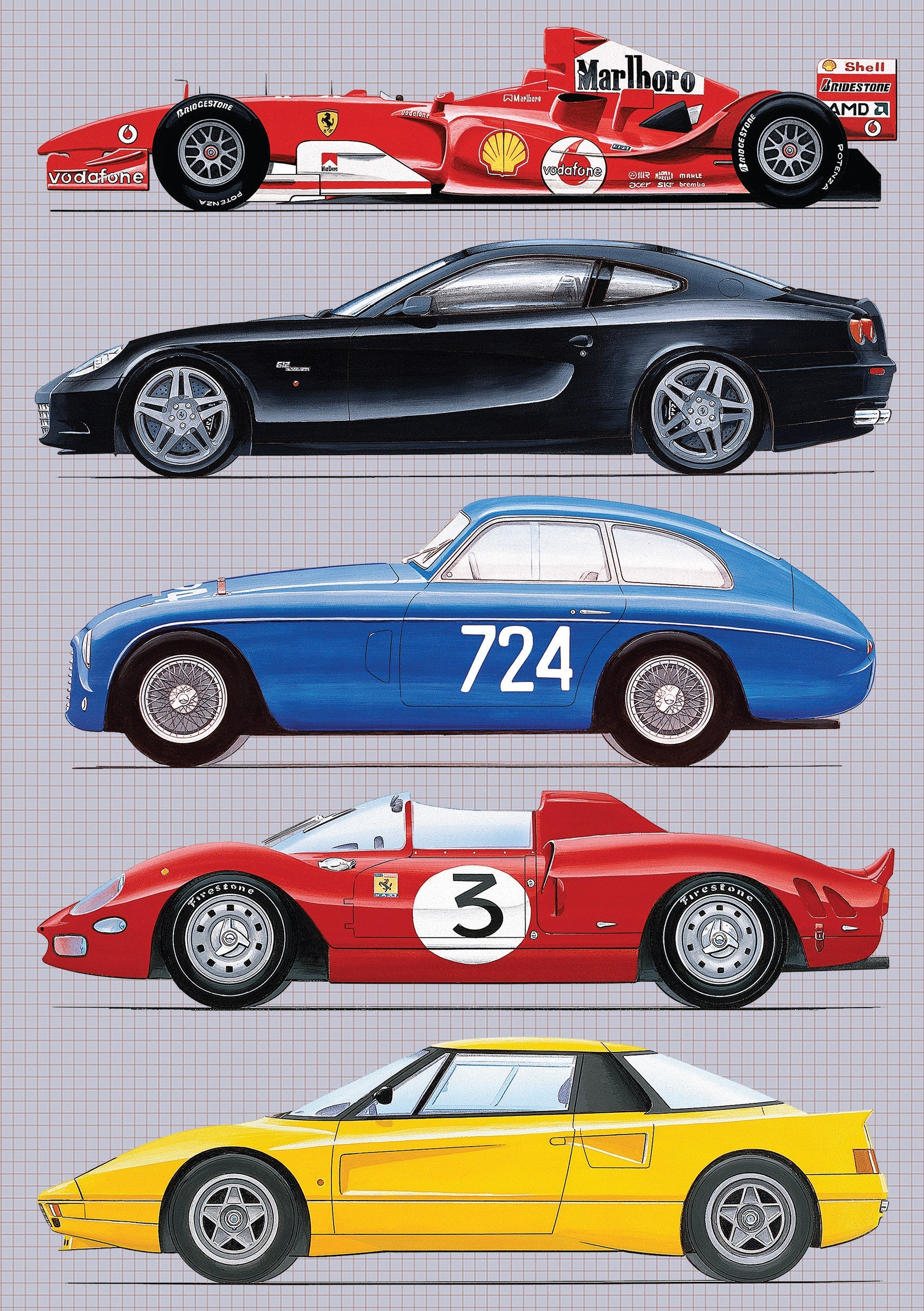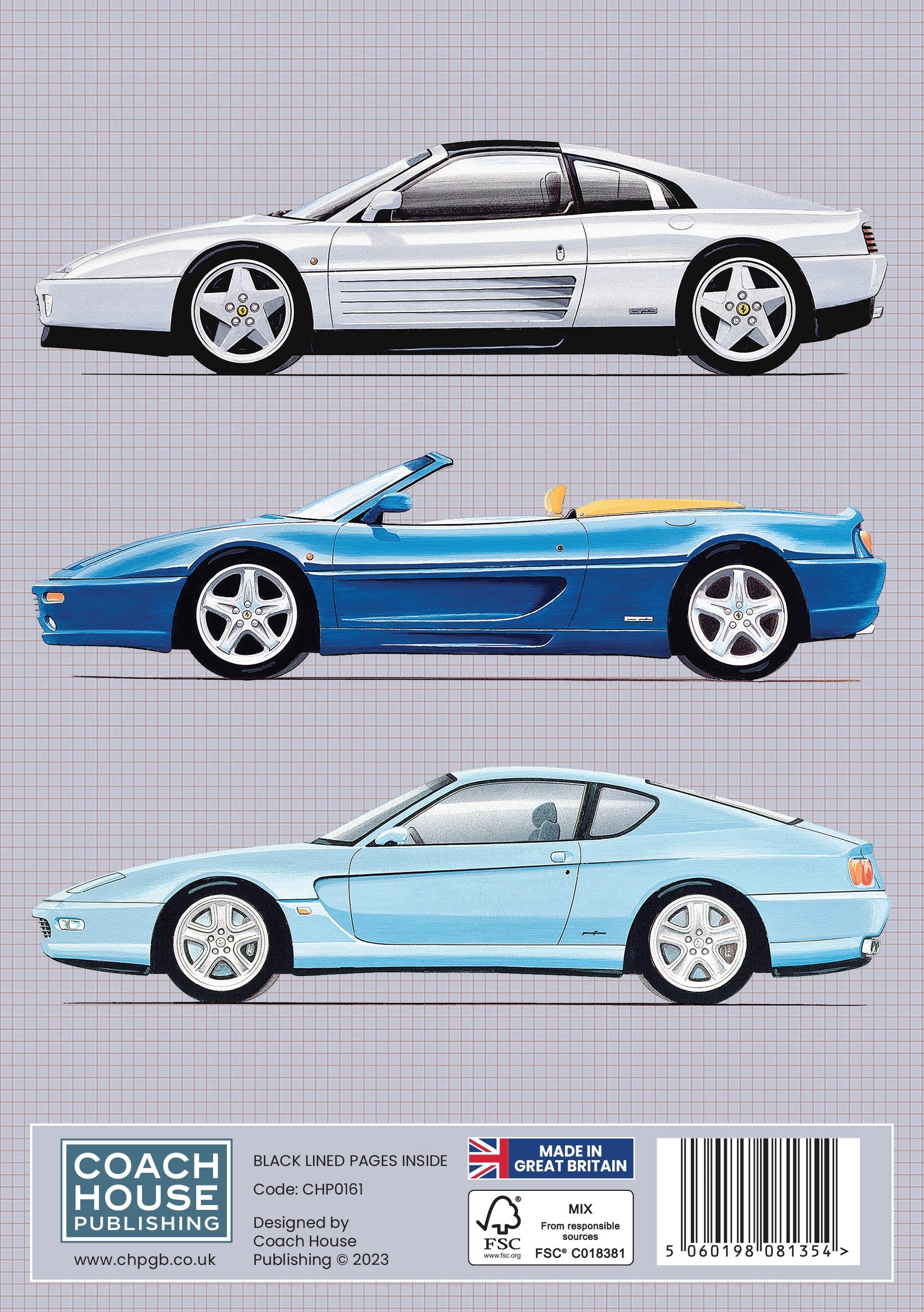 The front and rear cover displays a series of carefully illustrated images of Ferrari models through the ages. The perfect notebook for Ferrari Enthusiasts around the world!