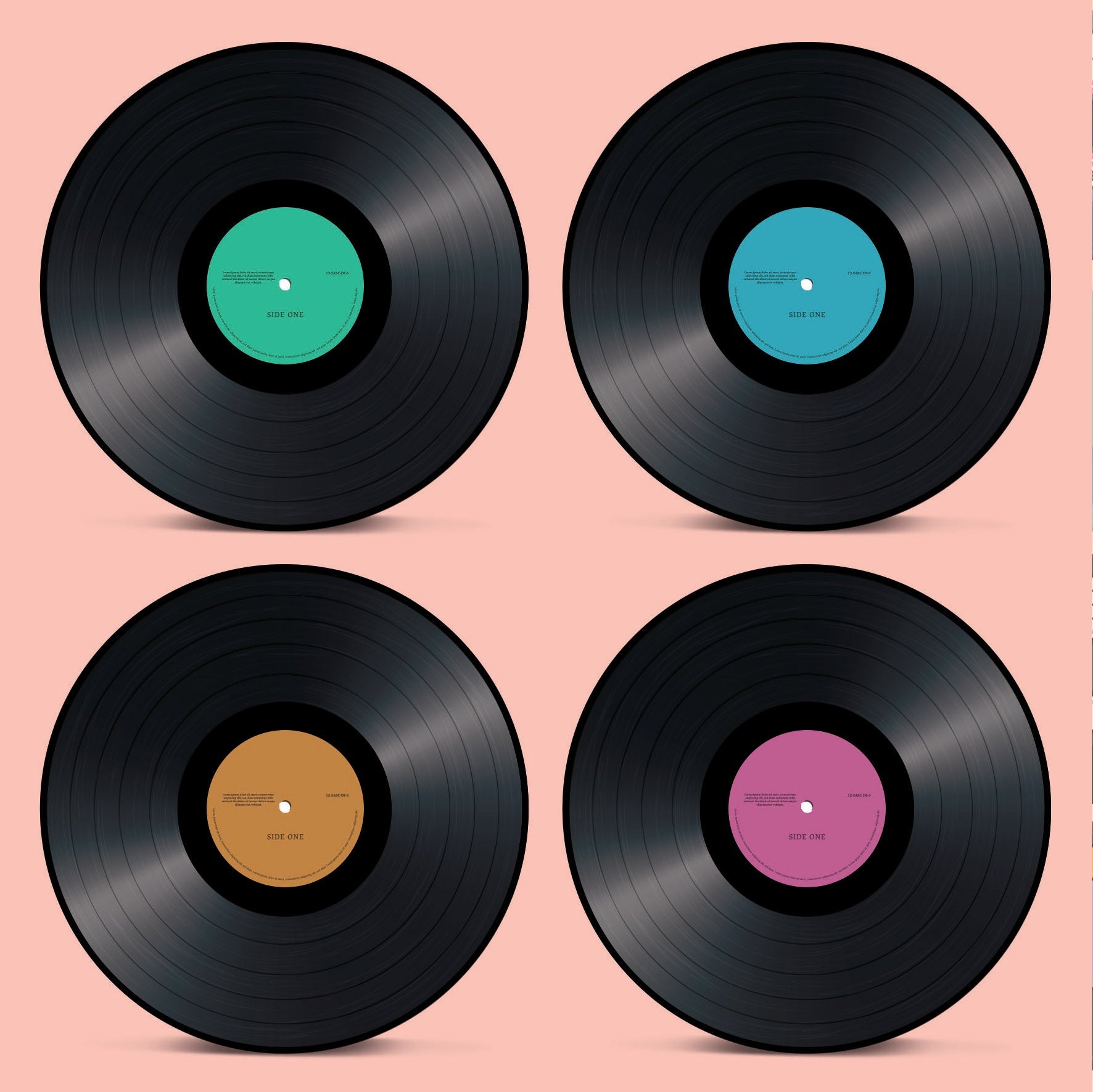 The front and rear cover designs showing a series of carefully illustrated images of Vinyl Records. The perfect card for Retro and Music Enthusiasts around the world!